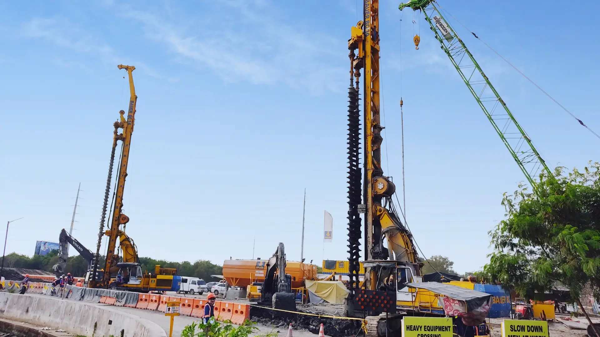The Zapote New Satellite Depot is part of the expansion of the Country's Light Railway Transit (LRT) Line-1. The 11.7 km LRT-1 extension from Baclaran to Cavite will lessen the traffic congestion on the roads and will benefit the commuters coming from South Area to work in Metro Manila by lessening their travel time. The Zapote New Satellite depot will consist of a light maintenance building with two tracks and nine stabling tracks for 18 trains. The subsoil condition of the project area consists of varying levels of significant thickness of very soft to very stiff silt, clay, and very loose to very dense sand. The challenge is to reach the average target strength of 2.6 MPa in this difficult soil condition. Hence, for the ground improvement required in this project, Bauer Philippines was awarded with the design and construction of the retaining wall via Mixed-in-Place (MIPTM ) Wall. The MIPTM Wall will reduce the settlement criteria to an acceptable level and will increase the shear strength of the soil before the future retaining wall, to guarantee the sufficient bearing capacity. Our experts successfully installed a total of 33,683 lm of MIPTM columns in an interlocking grid using 550 mm diameter double-auger mixing tool, drilled down to a depth of 14 m with cement slurry being added.