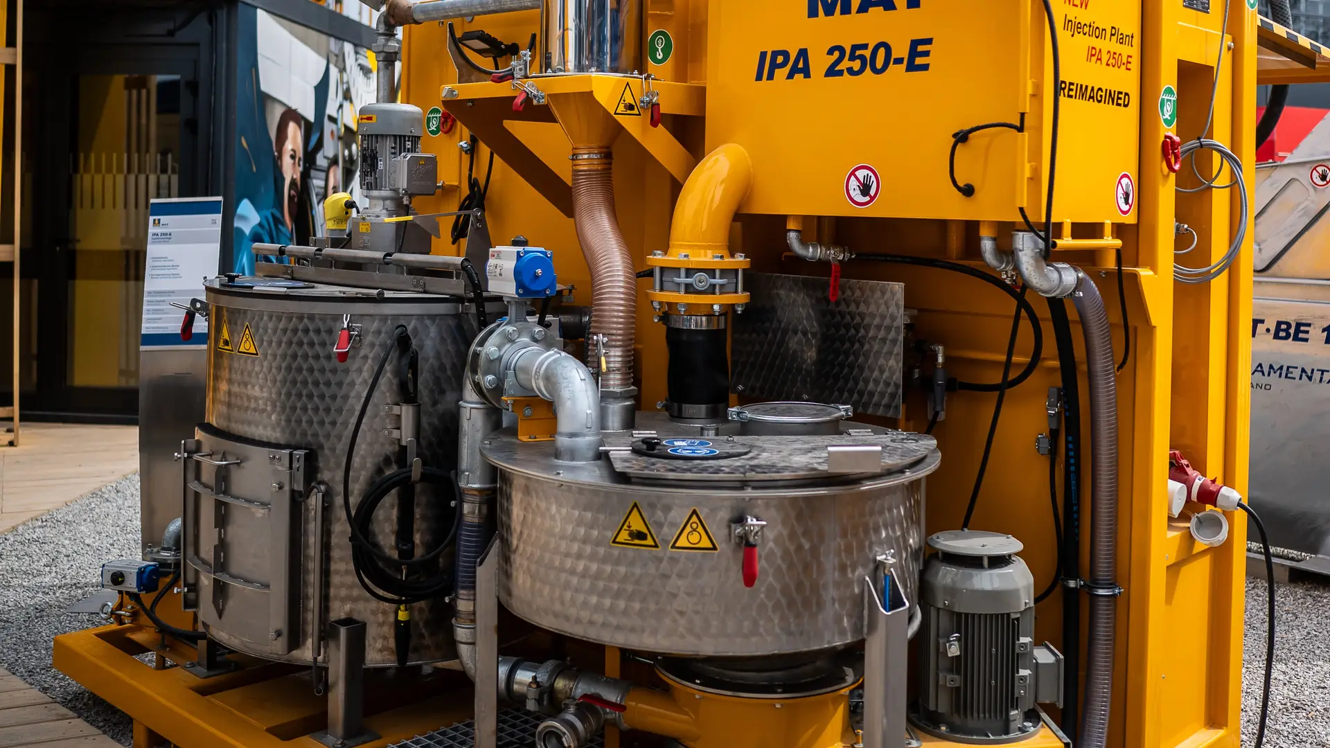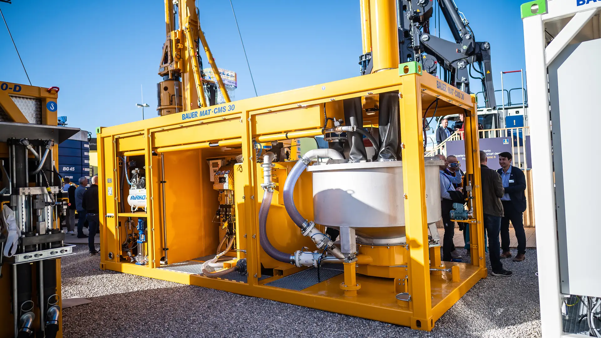 On November 1, 2019, the BAUER Group acquired Mühlhäuser-Obermann GmbH. Under the new name Obermann MAT GmbH, this company has since expanded the MAT portfolio with injection and grouting pumps, mixers and HDI pumps. One example of the successful combination of these two technologies is the IPA 250-E injection plant, which premiered at the bauma 2025. A new ring exchange method for rotors on decanter centrifuges was also unveiled. This replacement with an overhauled rotor considerably shortens the time-intensive and costly rotor maintenance. The advantage for customers is that the downtime of their decanter due to maintenance is reduced by weeks. With the CMS 50, Bauer MAT presented the next generation of its mixing technology.